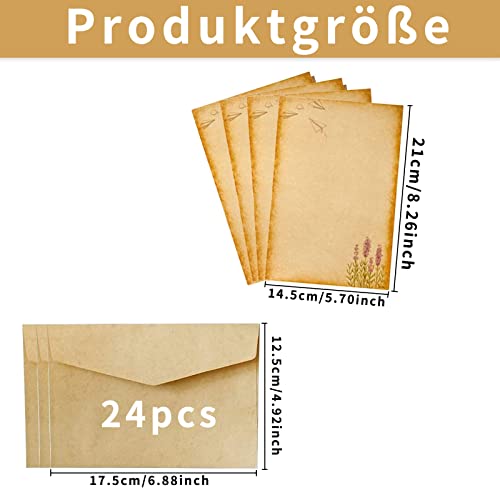 Qunkun Set di 48 fogli di carta da lettere vintage, 24 buste resistenti, carta da lettere double face, carta per inviti di matrimonio, biglietti di auguri medievali, carta da lettere