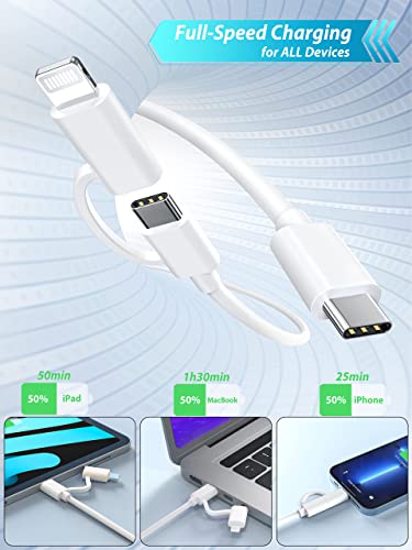 【Multi Cavo di Ricarica 2 in1】 - Design esclusivo Quntis USB C a Lightning e cavo per porta USB C, adatto a tutti i dispositivi con porte Tipo-C e Lightning. Devi solo utilizzare lo stesso cavo per caricare i dispositivi con porta Type-C e porta Lightning, che risolve il problema di cambiare frequentemente il cavo di ricarica e migliora la tua esperienza di ricarica quotidiana. (Nota: la ricarica di due dispositivi contemporaneamente non è supportata)