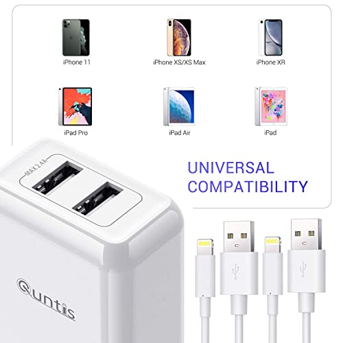 Quntis 12W 2 Porte Caricatore iPhone + 2 Pezzi 2m Cavo iPhone, [Certificato MFi] Caricabatterie USB e cavo Lightning per iPhone SE 2020 XS Max XR X 8 Plus 7 Plus 6s 6 Plus 5s 5c SE iPad Airpods