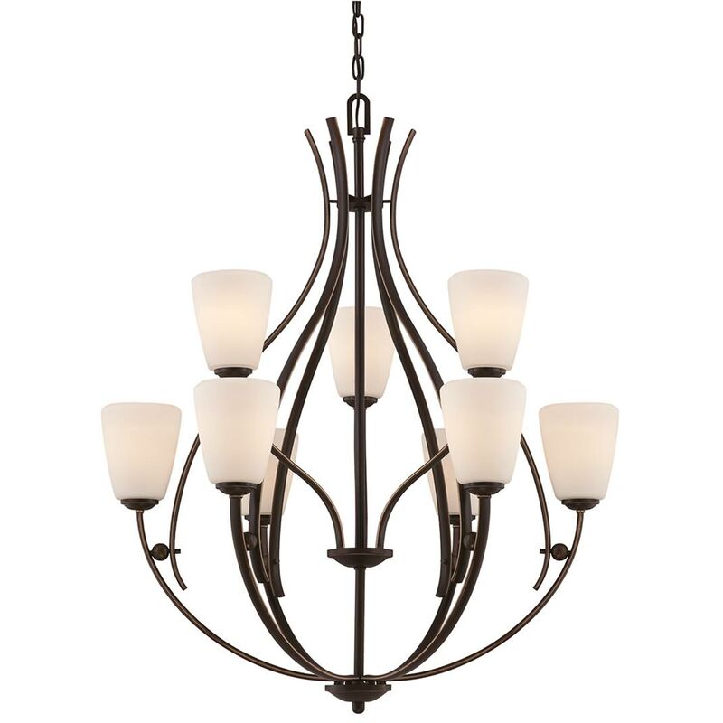 Kronleuchter Chantilly 9xe27 H: 99.1 Ø: 81.3 Dimensioni in mm: Altezza: 991, diametro: 813 Peso in kg: 12330 mezzo luminato incluso: no Tipo di lampada/versione: E27 Prestazioni massime in Watt: 60 Dimmbar: No Classe di protezione: ip20 materiale per la casa: metallo, vetro inciso Colore: Palladio Bronze