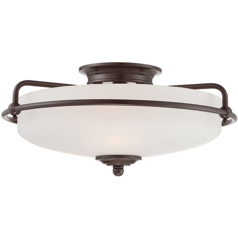 Collezione Griffin LUCE RILASSANTE Plafoniera a 3 luci. Questo stile sobrio conferisce un look moderno ed elegante a quasi tutti gli ambienti. Il paralume acidato è dipinto di bianco all'interno, per diffondere la luce in modo uniforme e illuminare la casa con una luce rilassante. Il paralume è sostenuto da bracci dolcemente ricurvi, rifiniti in bronzo palladiano.