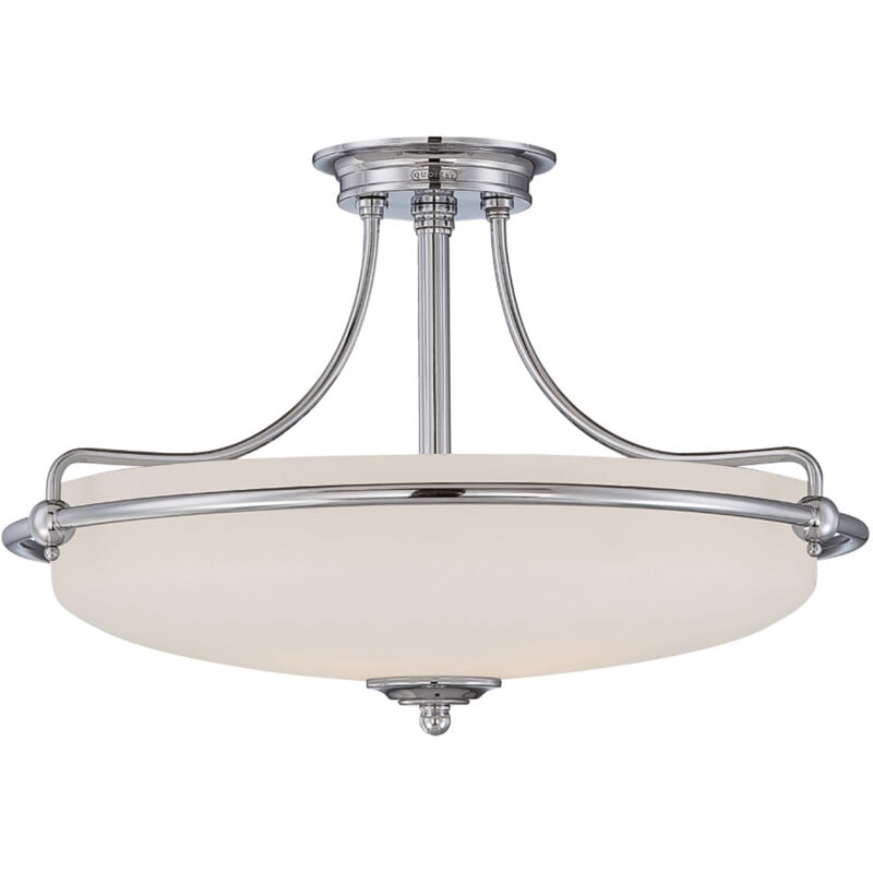 Collezione Griffin LUCE RILASSANTE Lampada a soffitto a 4 luci . Questo stile sobrio conferisce un look moderno ed elegante a quasi tutti gli ambienti. Il paralume acidato è dipinto di bianco all'interno, per diffondere la luce in modo uniforme e illuminare la casa con una luce rilassante. Il paralume è sorretto da bracci dolcemente ricurvi.