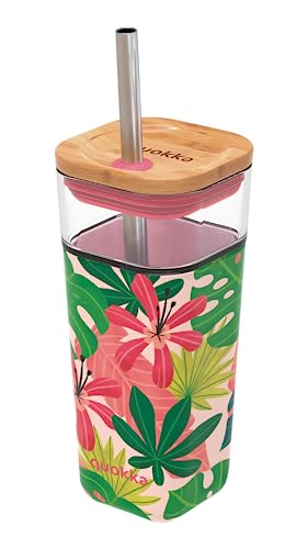Quokka LIQUID CUBE PINK JUNGLE 2022 | BICCHIERE IN VETRO CON CANNUCCIA E COPERTURA IN SILICONE 540 ML