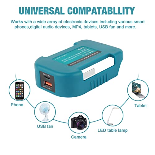 Doppie porte USB - Convertitore adattatore compatibile con la batteria Makit_a 18V Li-Ion LXT a slitta, include due porte USB Type-C, PD e USB/QC3.0. Può fornire la ricarica per piccoli dispositivi elettronici, come smartphone, tablet, ventole USB, fotocamere, dispositivi audio digitali e altri dispositivi USB.