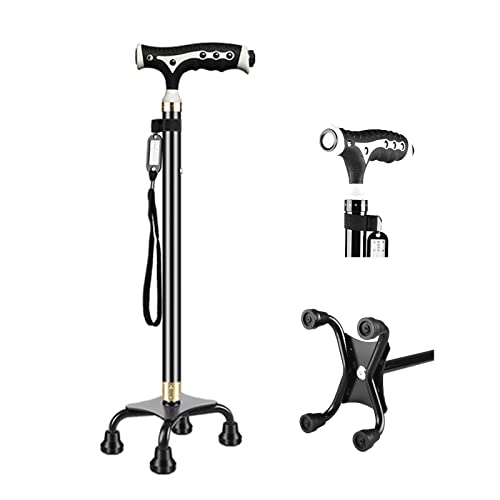 QUTBAG Bastone Passeggio Indipendente con Base Quadrupla Antiscivolo per Anziani Bastone Passeggio Retrattile Leggero con Altezza Regolabile 10 Livelli Luci LED Aiuto Mobilità (Color: Black)