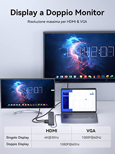 【Descrizione di 11 Porte】QUUGE docking station USB C è dotata di due porte video, 4K HDMI e 1080P VGA;