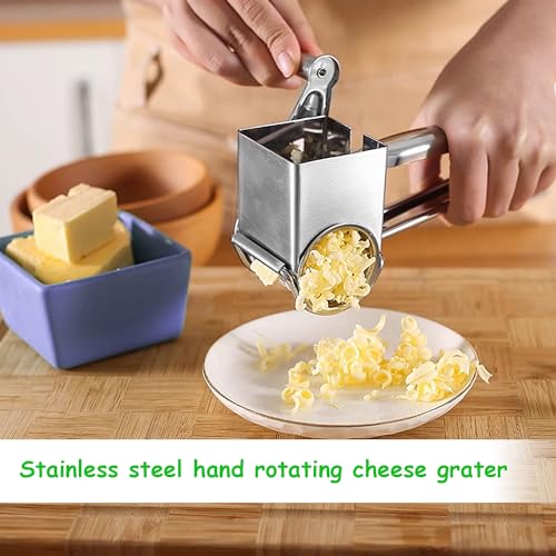 Facilità d'uso e comodità: Questa grattugia per formaggio è dotata di quattro set di lame per grattugiare rapidamente ed efficientemente il formaggio stagionato. Basta inserire il cibo nel tramoggia e ruotare la manovella per grattugiare o triturare.