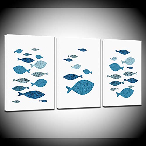 QWERGLL 3 Pannelli Oceano Astratto Pesce di Mare Corallo Blu Stampe su Tela Stampe per Poster Quadri Immagini Quadri Soggiorno Decor Opere d'Arte