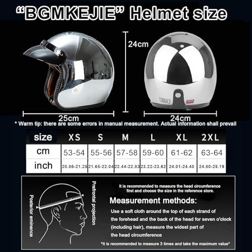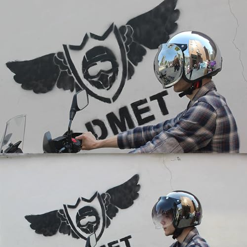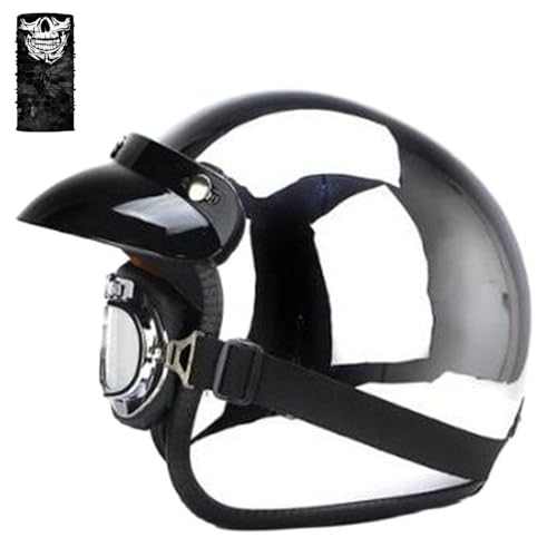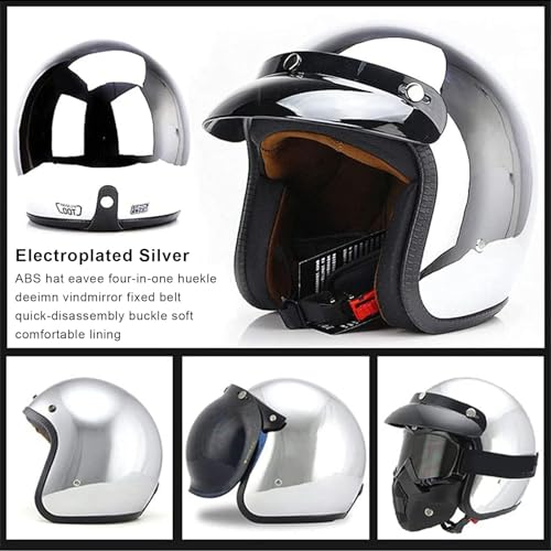 Qwert Caschi Jet Specchio Argento Cromato Casco Jet Moto Jet Moto Pilota Crash Chopper Casco Moto Retro, con Visiera Parasole, Approvato DOT, S-XXL (55-64cm)