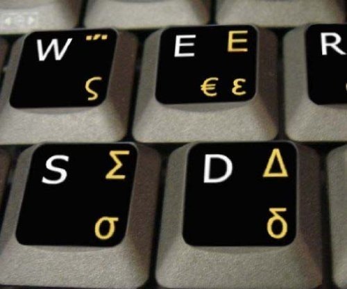 Qwerty Keys Greco - Inglese Adesivi Nero con Giallo e Bianco Lettere - Adatto per Qualsiasi Tastiera