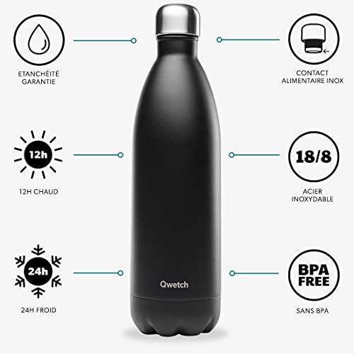 QWETCH - Bottiglia Isotermica Originals - Matt Nero 1L - Bottiglia Nomade in Acciaio Inox - 24h Fredda & 12h Calda - Impermeabile, senza BPA