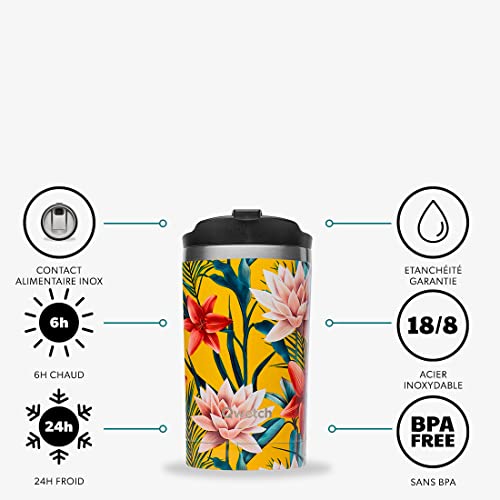 QWETCH - Travel mug isotermico - Matt Tropicale 300ml - Tazza per Caffè & Tè in Acciaio Inox - 6h caldo & 12h freddo - Senza BPA, Impermeabile