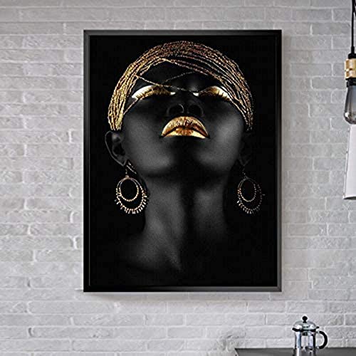 QWEWQE Quadro su tela astratta pittura su tela dipinta nero oro Africa donna modello arte poster arte murale per soggiorno decorazione da parete (60 x 90 cm)