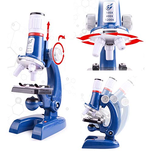 Qwhome Microscopio per Bambini 100X 400X 1200X Set Microscopio, Kit Microscopio Educativo/Giocattoli Scientifici per L'educazione Precoce Adatto A Bambini O Bambini con Porta Cellulare