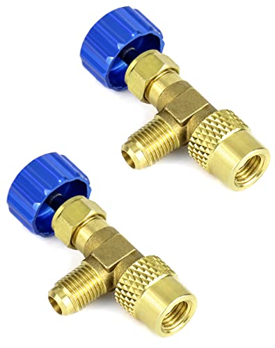 QWORK 1/4"-1/4"Valvola di Sicurezza del refrigerante, ottone valvola di controllo del flusso, Valvola di carico del refrigerante R22 Connettore Adattatore, Nuovo aggiornamento,2 Pezzi