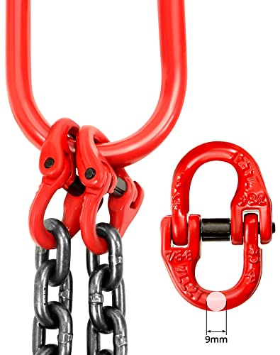 Imbracatura a catena a due capi. Capacità totale a 2 gambe: 3t/6600lbs. Capacità 1 gamba: 2 t / 4400 libbre. Lunghezza catena: 1 metro. Diametro catena: 8 mm.