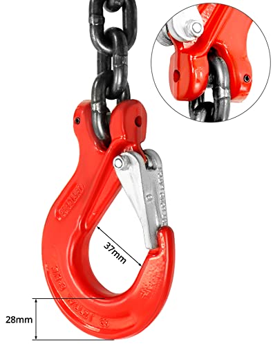 QWORK 3T Catena di sollevamento - 1 m - 2 fili - Catena in acciaio al manganese G80 (8 mm) - Gancio in acciaio legato ad alta resistenza