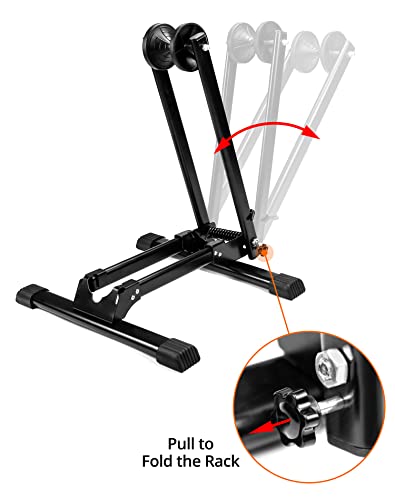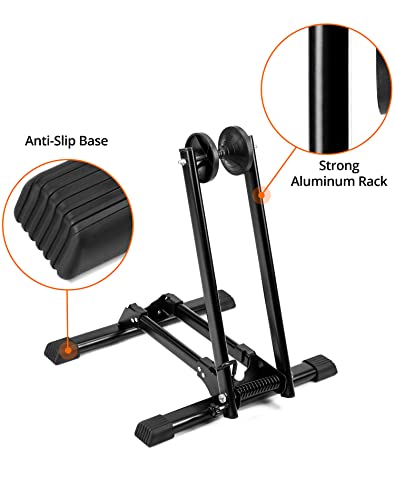 QWORK Cavalletto Bici Pieghevole Senza Fissaggio, Porta Biciclette da Terra in Alluminio per Casa, Garage, Negozio di Biciclette