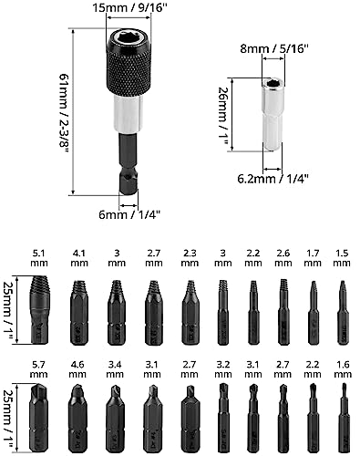 COMPLETAMENTE COMPATIBILE - Il set di cacciaviti rotti ha 22 pezzi, adatti per la maggior parte delle viti (2-12 mm), come B, viti a testa esagonale, viti a testa esagonale, viti per macchina, viti per legno, viti per lamiera e altro.