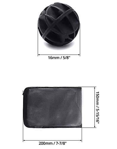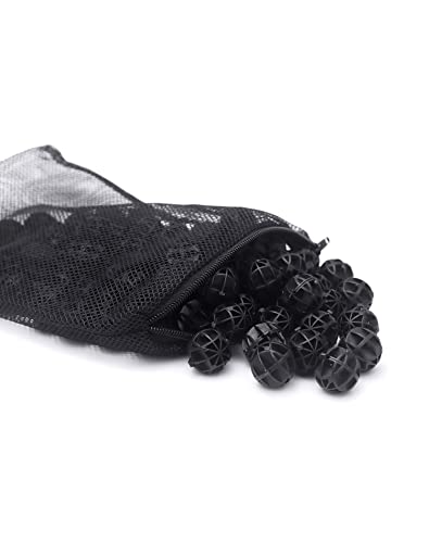 Confezione: questo prodotto è composto da 90 sfere filtranti bio semplici e funzionali con struttura in plastica e imbottitura in cotone ad alte prestazioni, ideali per ossigenare l'acqua e lo scambio di gas. Viene fornito con una custodia a rete per riporre queste palline biologiche.
