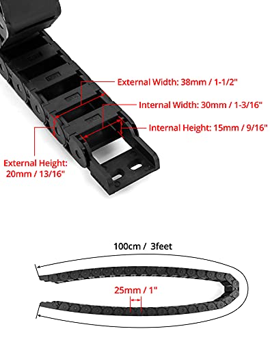 QWORK 4 Pezzi Catena di trascinamento, catena portacavi, Lunghezza 1 m, 15mm x 30mm, per Stampante 3 Dimensionale, Macchina del Router di CNC