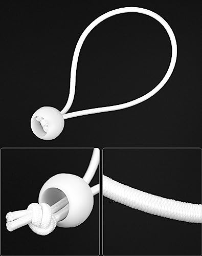 QWORK 100 Pezzi Corde Elastiche con Sfere, 15 cm, corde elastiche bianche, adatte per tende da campeggio, teloni, striscioni, articoli per la casa