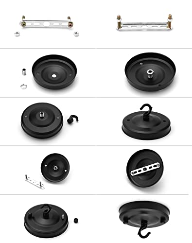 QWORK 3 pezzi 110 mm di diametro Gancio Per Rosone A Soffitto, Piastra a Soffitto Lampadario Vintage, Per Il Fissaggio Della Plafoniera, Nero