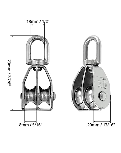 QWORK 4 Pezzi M20 Doppia Puleggia Carrucola per Sollevamento, Puleggia Palestra Inox 304 Carico 35kg Commercio, Industria