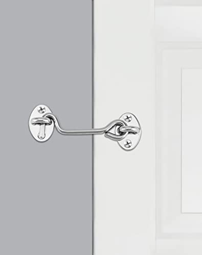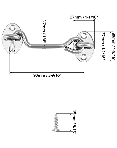 QWORK 2 Pezzi ganci porta in acciaio inossidabile, Gancio e Occhio, per porta della stalla, porta del garage, chiavistello del cancello del giardino, con viti di montaggio, 10 cm