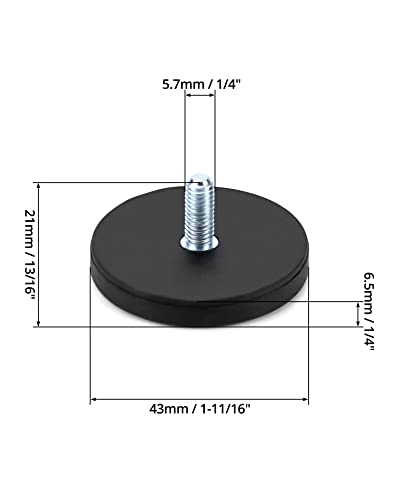 QWORK 4 Pezzi Magneti Al Neodimio Gommati Ø 43mm Con Filettatura Esterna M6, Magneti Rotondi In Gomma, Forza Adesiva 10kg