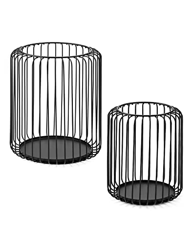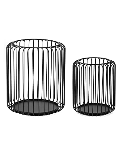 QWORK 2 pezzi portacandele in metallo, lanterne da interno da arredo, portacandele decorativi neri, per soggiorno, camera da letto, tavolo da pranzo