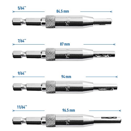 QWORK - Set da 4 pezzi di punte per trapano autocentranti per cerniere porta: 5/64", 7/64", 9/64", 11/64"