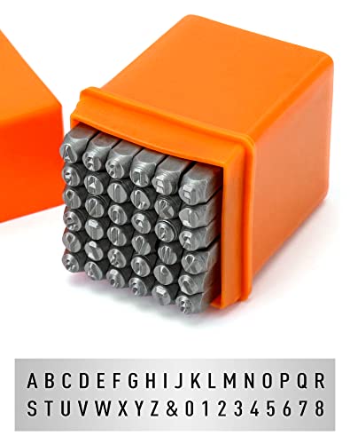 QWORK 36 Pezzi Punzoni Numeri e Lettere per Intaglio Fai da Te Goffratura su Metallo Legno Cuoio (4mm) (Numeri 0-9, Alfabeto AZ, Simbolo &)