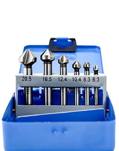 QWORK 6 pezzi svasatore 90°, Ø 6.3-20.5 mm, HSS 4241, per plastica, legno e metallo