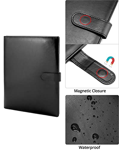 QWORK Portablocco A4 con Copertina, Cartella Porta Documenti Premium Contiene Documenti A4 A5 e Biglietti da Visita (Nero)