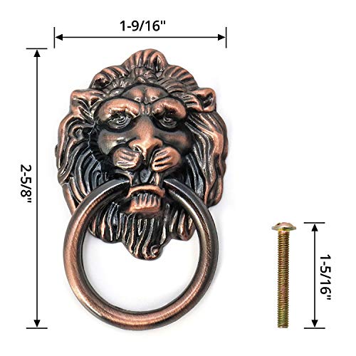 QWORK Retro Battiporta, Maniglia Pomello Porta Testa Leone, Maniglie per Mobili Antichi Rame Antico, 10 Pezzi