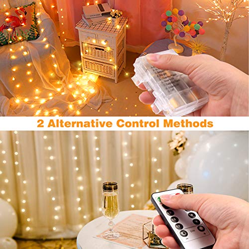 Qxmcov Stringa Luci LED a Batteria, Catena Luminosa 14 Metri 140 LED con Telecomando, Luminosa Lucine LED Decorative per Camere da Letto Giardino Casa Feste Natale Matrimonio