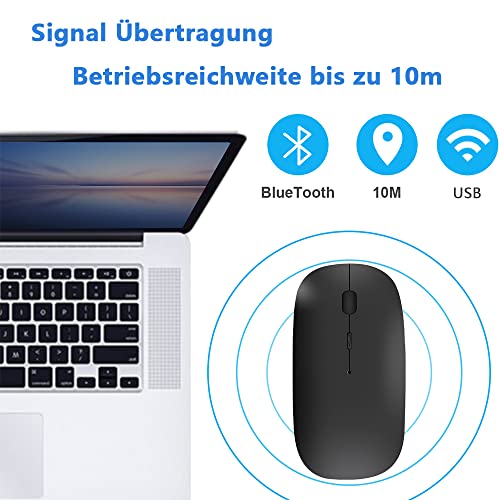 Qxvnm Mouse wireless Bluetooth (USB 2,4 GHz + Bluetooth 5.2 + adattatore USB-C ) mouse wireless ricaricabile per MacBook Pro/Air/Mac/iPad/Laptop/Chromebook/Computer/Android Tablet (nero)