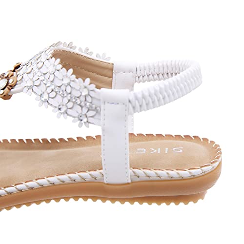 QYEW Sandali con Plateau per Donna Casual Estate, Scarpe Eleganti con Perline Bohemien, Scarpe Casual Piatte alla Caviglia con Cinturino a T, Scarpe estive all'aperto sulla Spiaggia per Le Vacanze