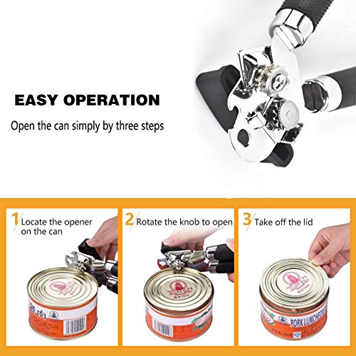 QYHSS 3 In 1 Apriscatole Manuale, Con Manopola Sovradimensionata Coperchi Facili Da Girare Senza Sbavatura, Lama Da Taglio In Acciaio Inossidabile, Per Anziani Con Artrite (Nero)