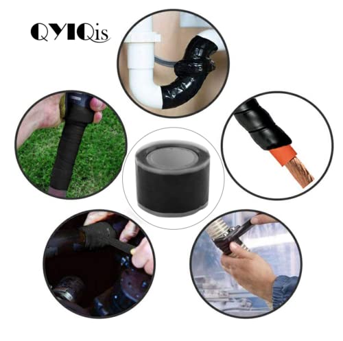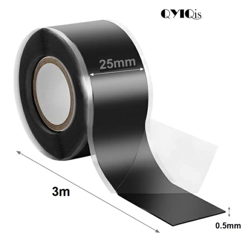 QYIQis Nastro in Silicone per Riparazioni, 25mmx3m Nastro Isolante Resistente al Calore, Nastro di Silicone Nero per Acqua, Nastro Autoadesivo per Riparazione tubo di Emergenza, Nastro di Riparazione