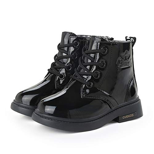 QZBAOSHU Stivali Bambina Impermeabili Stivaletti Ragazze Neve Stivali Pelle per Bambini 22 EU,Nero Peluche Interno