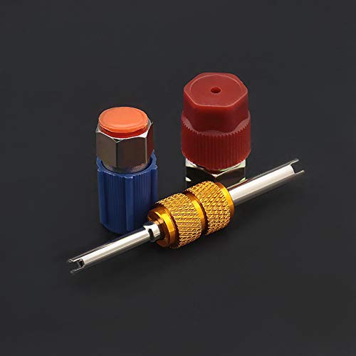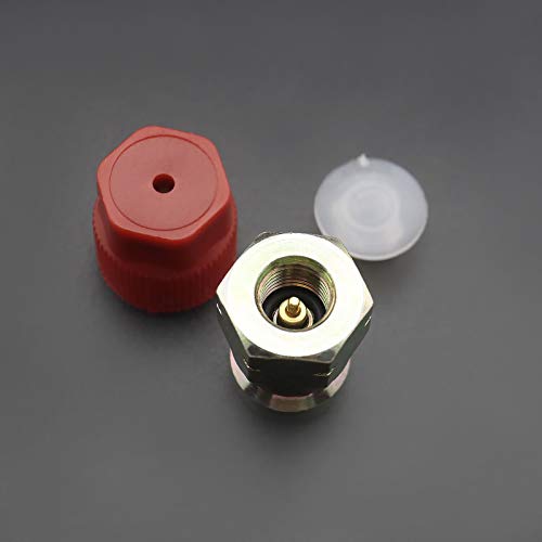 Contenuto della confezione: il kit adattatore di conversione da R12 a R134A A/C contiene 1 accoppiatore rapido lato basso, 1 attacco rapido lato alto, 1 tappo blu da 14 mm, 1 tappo rosso da 17 mm, 1 strumento di rimozione del nucleo della valvola.