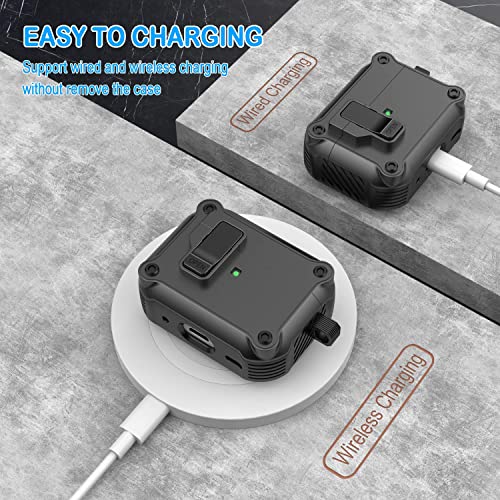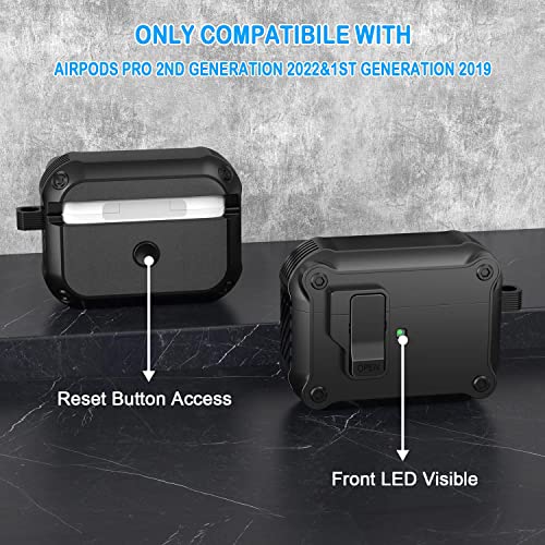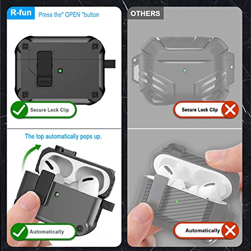 R-fun Airpods Pro 2a Generazione/1a Generazione Custodia Cover con Interruttore a Scatto, Clip di Bloccaggio Super Sicura per Custodia Airpods Pro (2019/2022) per Uomini Donne,Nero