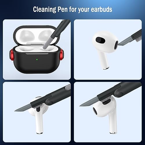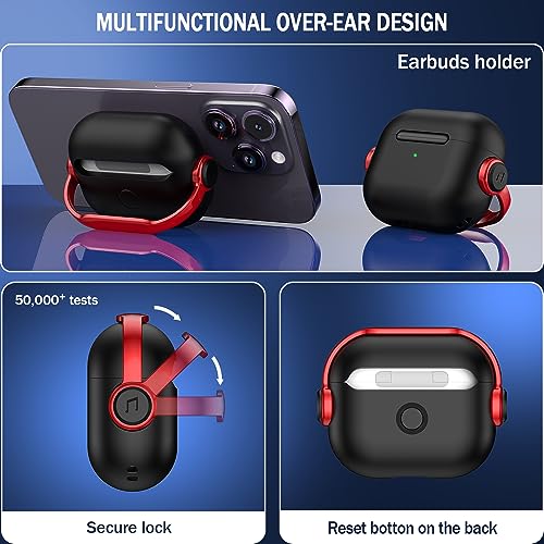 R-fun Custodia protettiva per auricolari di terza generazione con blocco sicuro, custodia per auricolari musicali con kit di pulizia compatibile con Airpods 3 2021 custodia di ricarica,Nero e rosso