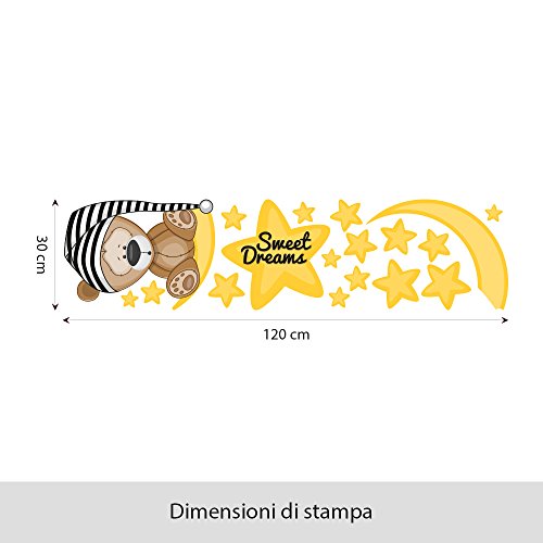 R00101 Adesivo murale per bambini Wall Art "Orsetto con cappellino a righe" - Misure 120x30 cm - Decorazione parete, adesivi per muro, carta da parati