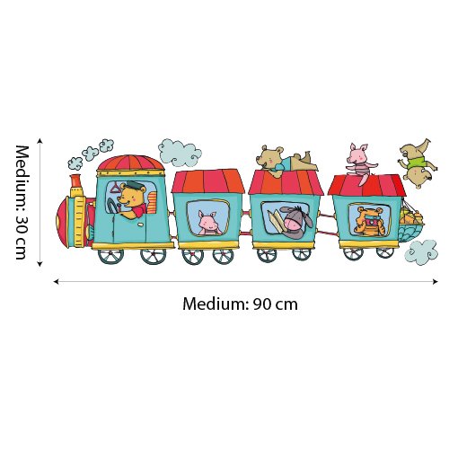 R00308 Adesivo murale per Bambini - Orsetto capotreno - Misure 90x30 cm - Decorazione Parete, Adesivi per Muro, Carta da Parati Adesiva Effetto Tessuto