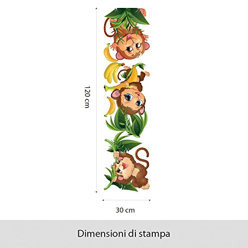 R00367 Adesivo murale per bambini Wall Art "Scimmiette nella giungla 01" - Misure 30x120 cm - Decorazione parete, adesivi per muro, carta da parati