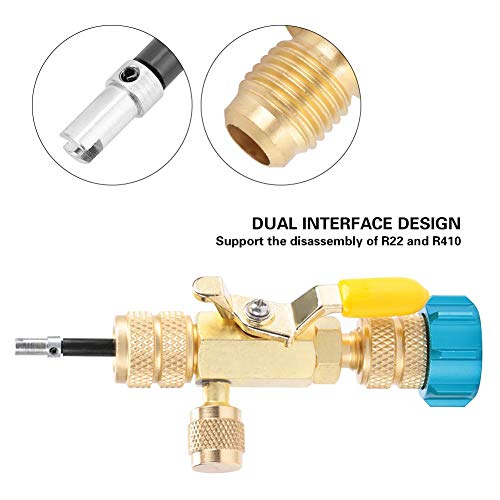 Usa L'uso di questo strumento ad alta efficienza rimuoverà e installerà rapidamente il nucleo della valvola. Può smontare la valvola R22 e R410.