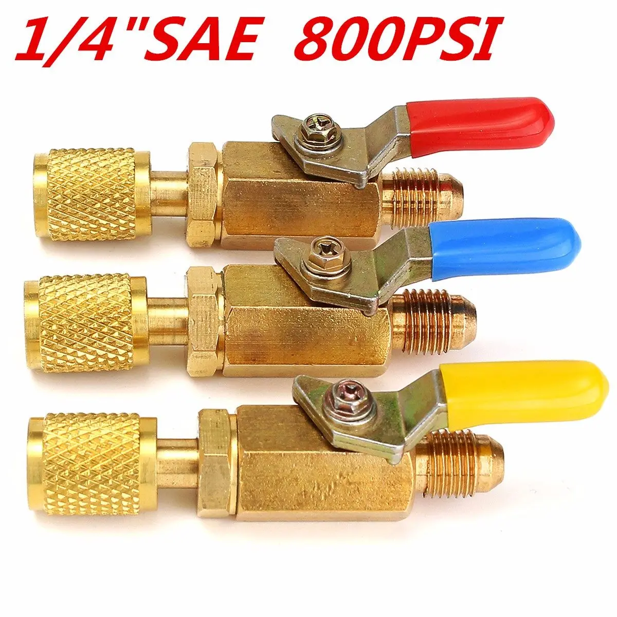 Car R410a 1/4" 800PSI SAE Straight Ball Valve Tap Hose Air Conditioner
